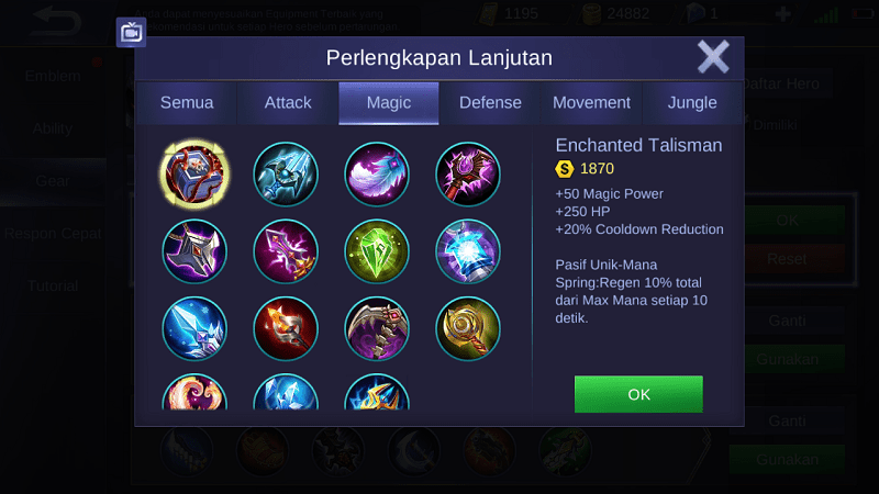 Enchanted Talisman adalah item magic yang paling sering dibeli oleh para Magedikarenakan mampu meningkatkan sebesar 20% Cooldown Reduction, +250 HP serta +50 Magic Power. Dengan adanya item ini, cooldown skill kamu akan menjadi lebih cepat dari sebelumnya.