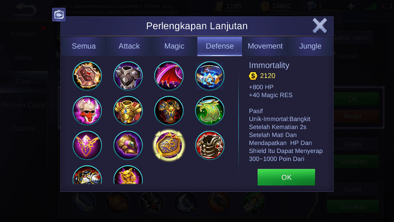 Di antara semua item Defense, menurut fajar Immortality yang paling sering digunakan karena mampu membuat heromu bangkit setelah mati dan mendapat sekitar 15% HP. Selain itu juga menambah +800 HP dan +40 Magic RES. Item ini selalu digunakan oleh para Tanker. Jadi kalo ada player yang mati lalu tiba-tiba bangkit lagi, jangan kamu kira dia nge-cheat ya.