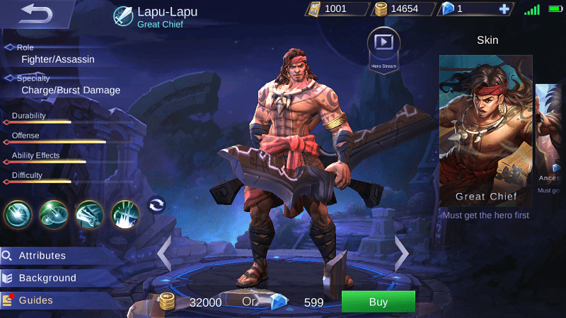 Hero terlupakan yang terakhir adalah Lapu-Lapu. Lapu-Lapu adalah hero Fighter yang sebenarnya sangat bagus untuk digunakan. Jarang digunakan bukan berarti hero ini jelek loh, Lapu-Lapu memiliki damage yang besarserta mampu menghasilkan efek stun. Uniknya, hero ini juga bisa dijadikan sebagai Tanker dalam tim. Namun sayangnya masih sedikit sekali player yang menggunakan hero ini.