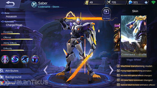 Hero Saber menjadi salah satu hero Assassin yang paling sering digunakan dalam Ranked Epic - Legend karena kemampuannya untuk mengunci seorang hero. Harga hero Saber juga cukup murah hanya 6500 BP atau 299 Diamonds.